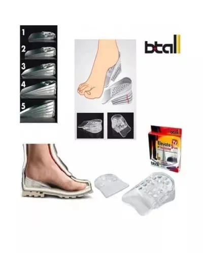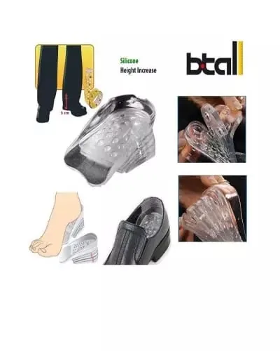 A stackable insole system designed for men and women who want a discreet, adjustable height boost and extra cushioning for everyday footwear. The set includes eight stackable pads that let you build lift from 1cm up to 5cm. Constructed from EVA foam and rubber elements with a neutral black finish, these inserts suit sneakers, boots, dress shoes and many other shoe types. They are trim-to-fit and intended for users who need subtle elevation and improved under-heel comfort during daily wear or activities.