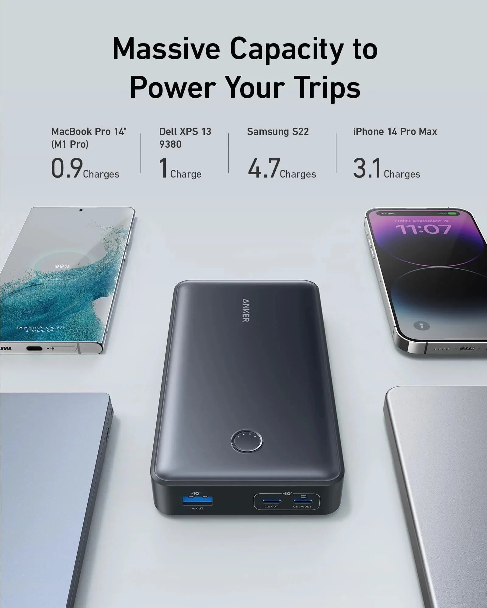The Anker 537 PowerCore 24000mAH Power Bank for Laptop A1379 (SKU: ANKER-537-POWERCORE-24000MAH-POWER-BANK-FOR-LAPTOP-A1379) is an ultra-compact powerhouse that keeps your laptop going, no matter where your day takes you.