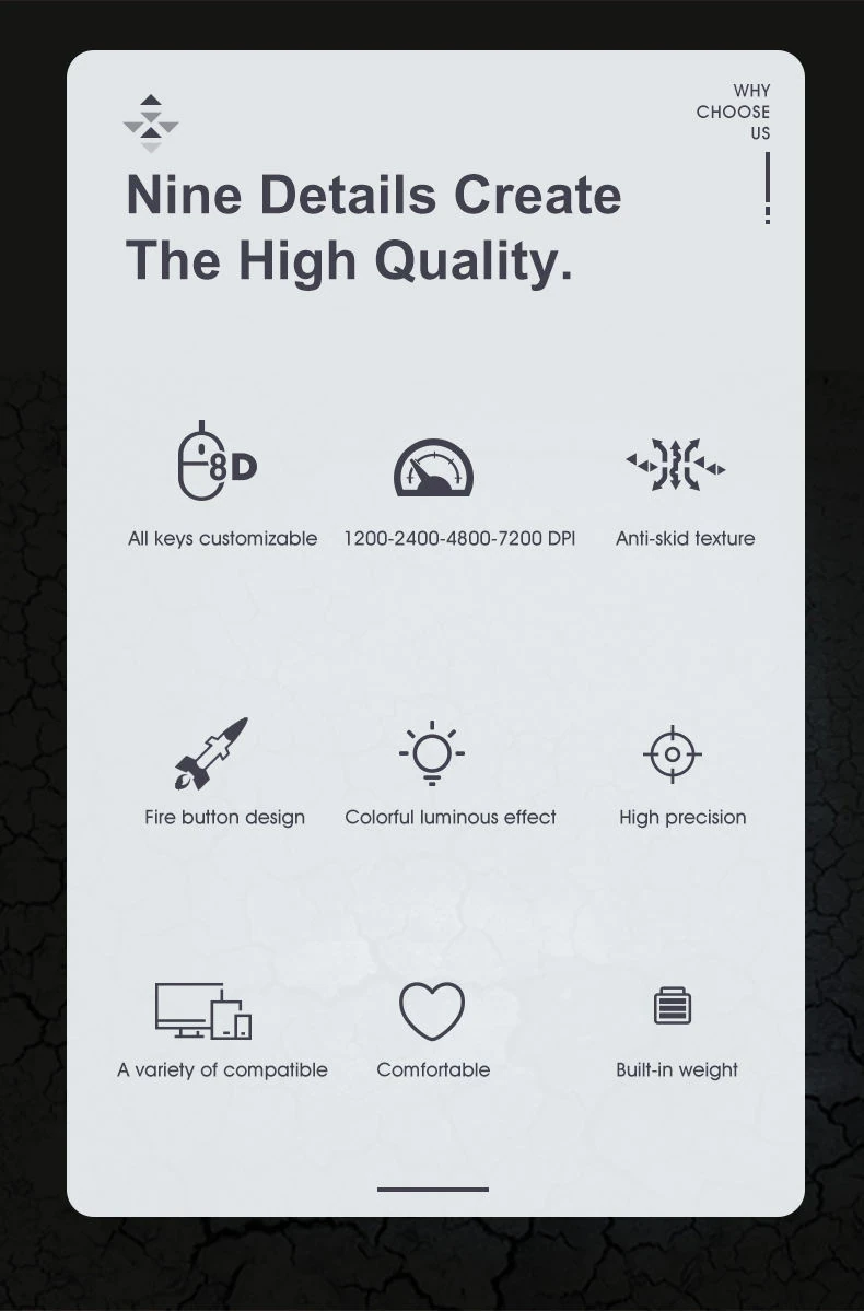Featuring adjustable DPI levels of 1200/2400/4800/7200, this gaming mouse allows you to customize sensitivity according to your gameplay needs. Its 8 programmable buttons provide enhanced control and flexibility during intense gaming sessions.