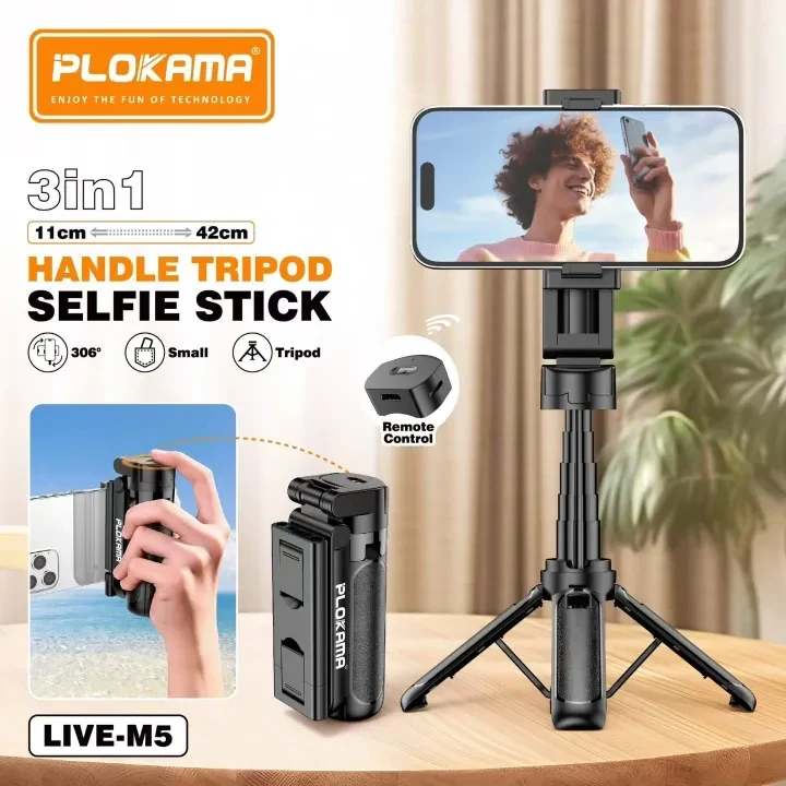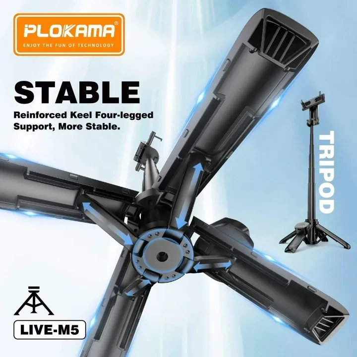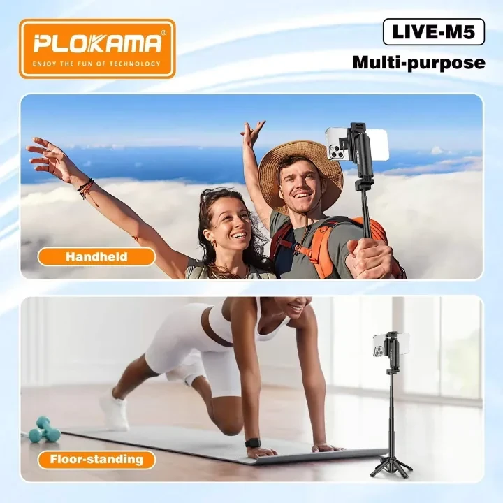 The PLOKAMA Selfie Stick Live M5 is a practical and user-friendly accessory designed for mobile photography, vlogging, and live streaming. Featuring a 2-in-1 selfie stick and tripod design, it allows you to capture stable photos and videos with ease, whether at home or on the go.