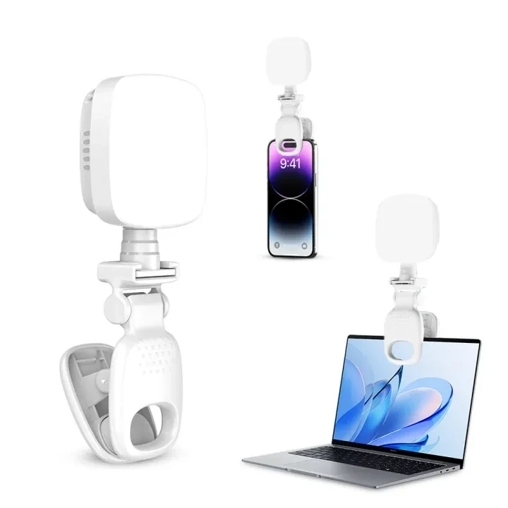 The Portable Fill Light D5 is a compact and lightweight LED selfie light designed to deliver soft and natural illumination anytime, anywhere. Its sturdy clip-on design allows easy attachment to smartphones, laptops, tablets, and cameras for instant professional-looking lighting.