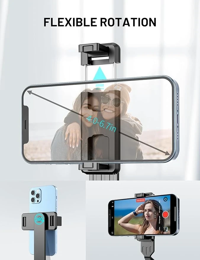 - Widely compatible phone clip with silicone pads (fits 5.5–7.5 inch phones)