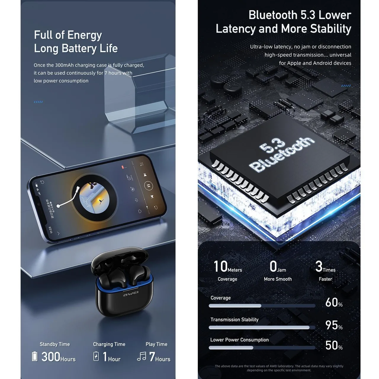 Awei T58 ANC V5.3 Wireless Bluetooth Earphones