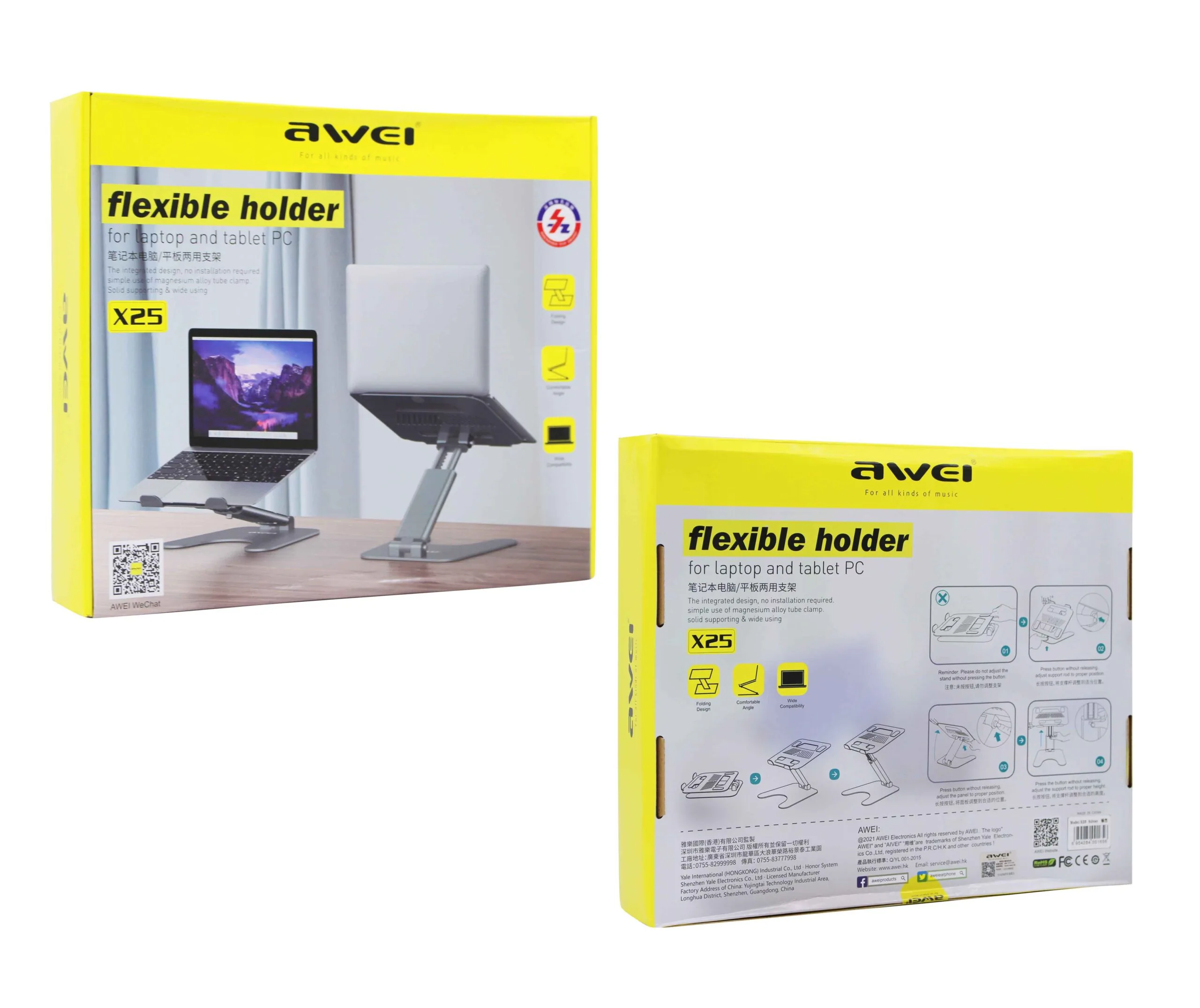 We sale 100% authentic AWEI X25 Laptop Stand Aluminum Alloy With Multi-Angle Lift by Awei.
