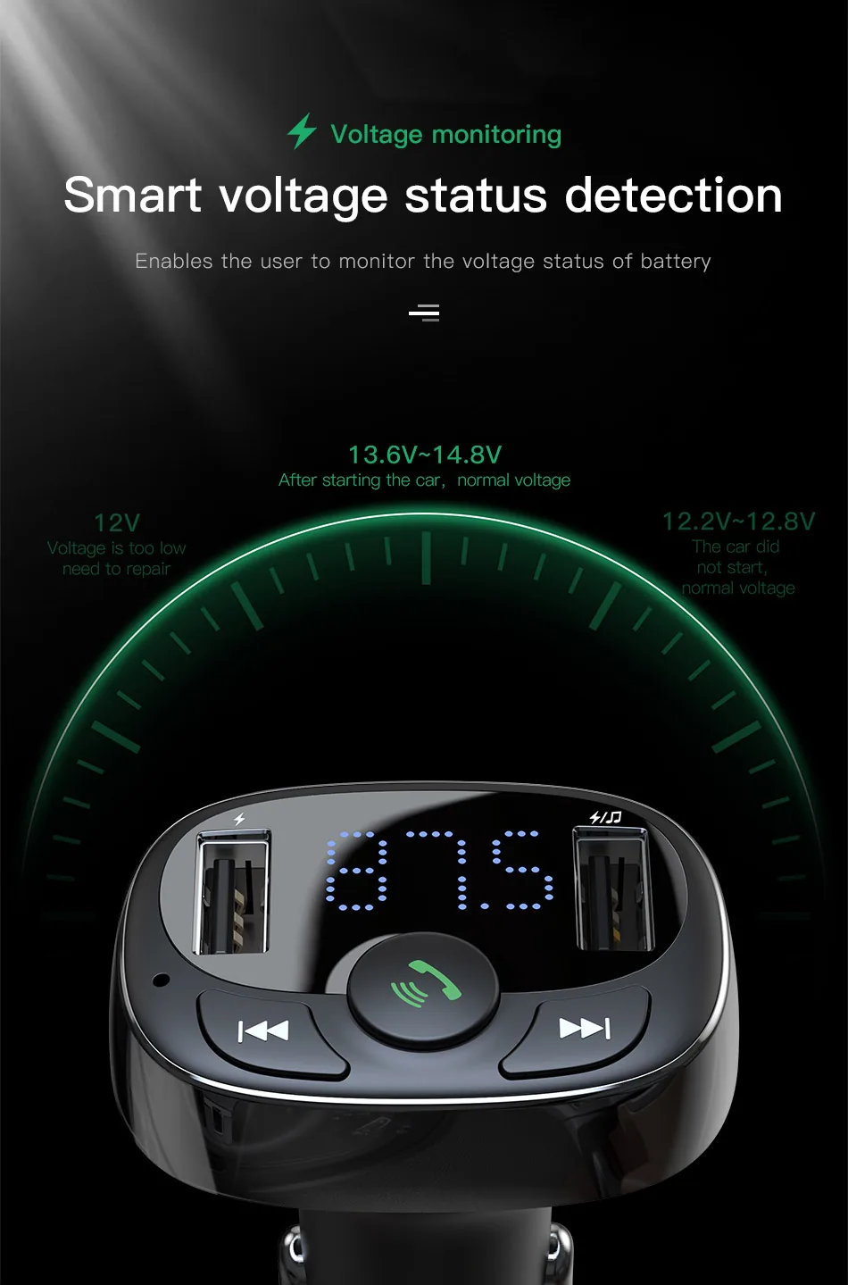 - FM Transmitter: Wirelessly transmit music and calls from your mobile device to the car stereo system.