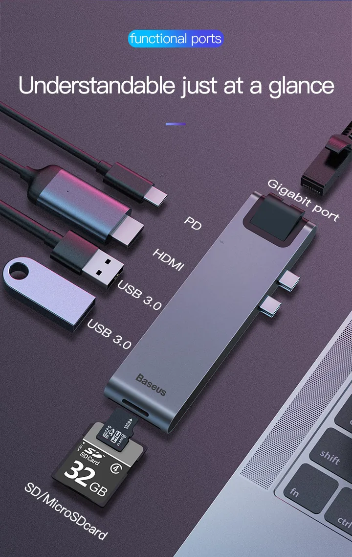 Shop Baseus 7-in-1 Dual USB-C Thunderbolt Hub For MacBook Pro-CAHUB-L0G to experience unparalleled convenience and top-notch performance. Elevate your everyday life with cutting-edge technology and stylish design!