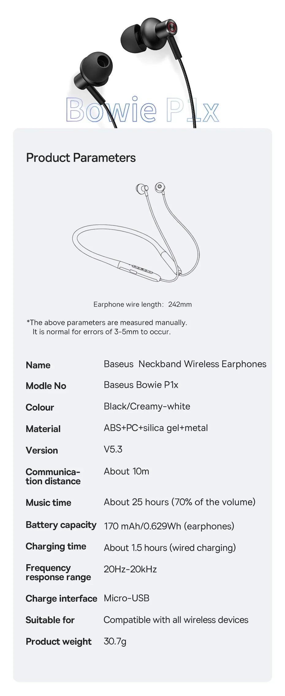 Discover the fusion of crystal-clear sound and elegant design in the Baseus Bowie P1x In-ear Neckband Wireless Earphones Black- your newest gadget for an immersive audio journey.