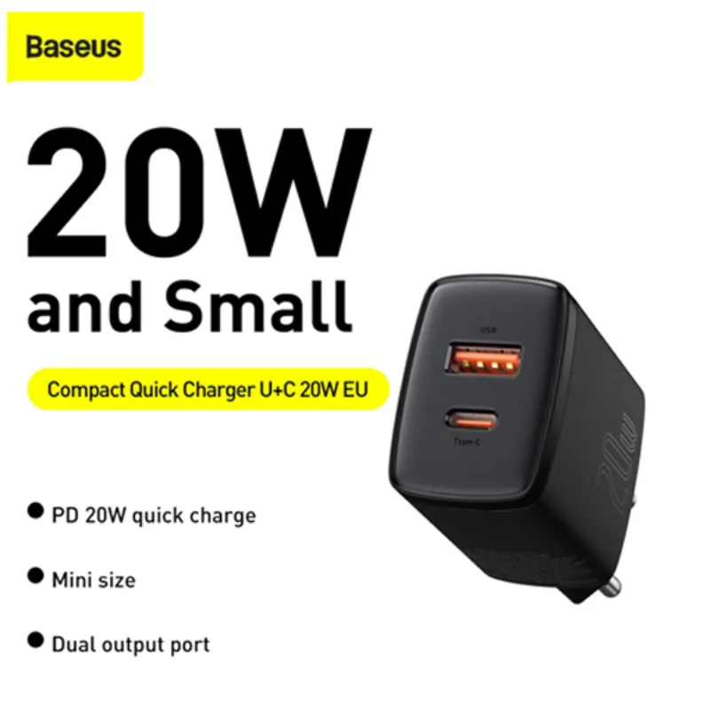 Shop Baseus Compact Quick Charger U+C 20W EU Black to experience unparalleled convenience and top-notch performance. Elevate your everyday life with cutting-edge technology and stylish design!