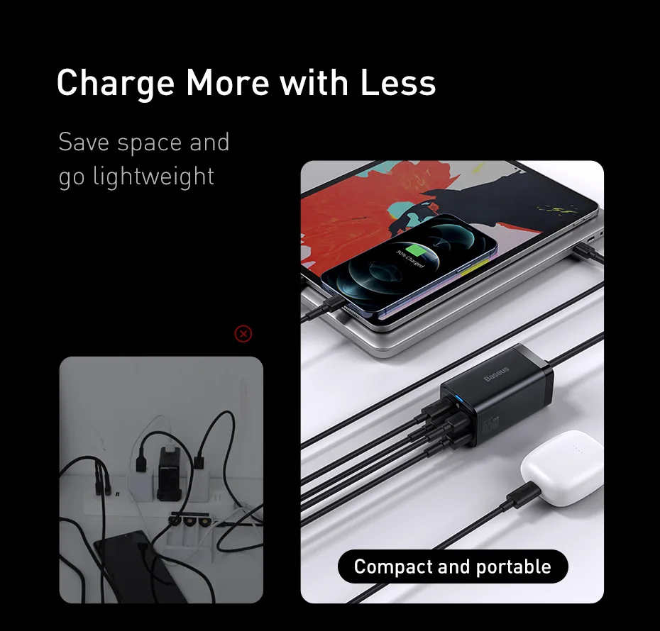 Choosing the Baseus GaN3 Pro 65W 2U+2C Desktop Power Strip gives you the ultimate combination of power, speed, safety, and convenience. It’s more than a regular power strip. It comes with technologically advanced features to meet all your charging needs, without compromising on safety. Its compact design ensures portability, making it a perfect companion for all your tech devices. This versatile charging solution is ideal for anyone seeking to stay connected while minimizing cable clutter.