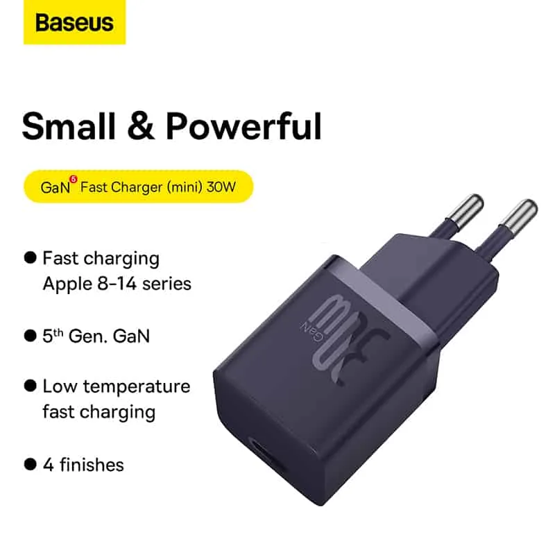 - Fast Charging: Armed with 30W power, the Baseus GaN5 charger ensures quick and efficiently charging for your devices.