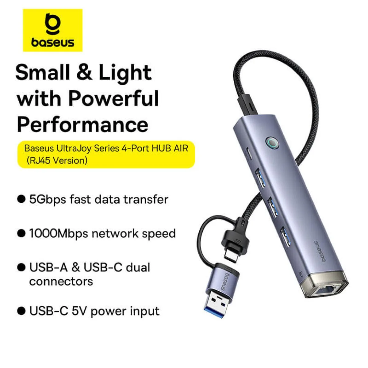 Shop Baseus UltraJoy 4 in 1 Hub Air USB-A & USB-C to 4xUSB3.0+USB-C Gray to experience unparalleled convenience and top-notch performance. Elevate your everyday life with cutting-edge technology and stylish design!