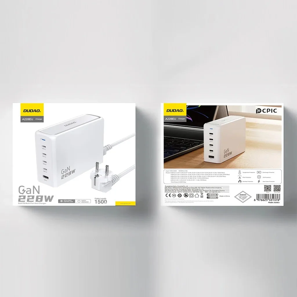 We have 100% brand new Dudao PD 228W Fast Charger USB*1 Type-C*4 A228EU in our stock. We also make sure you get it in perfect product packaging even.