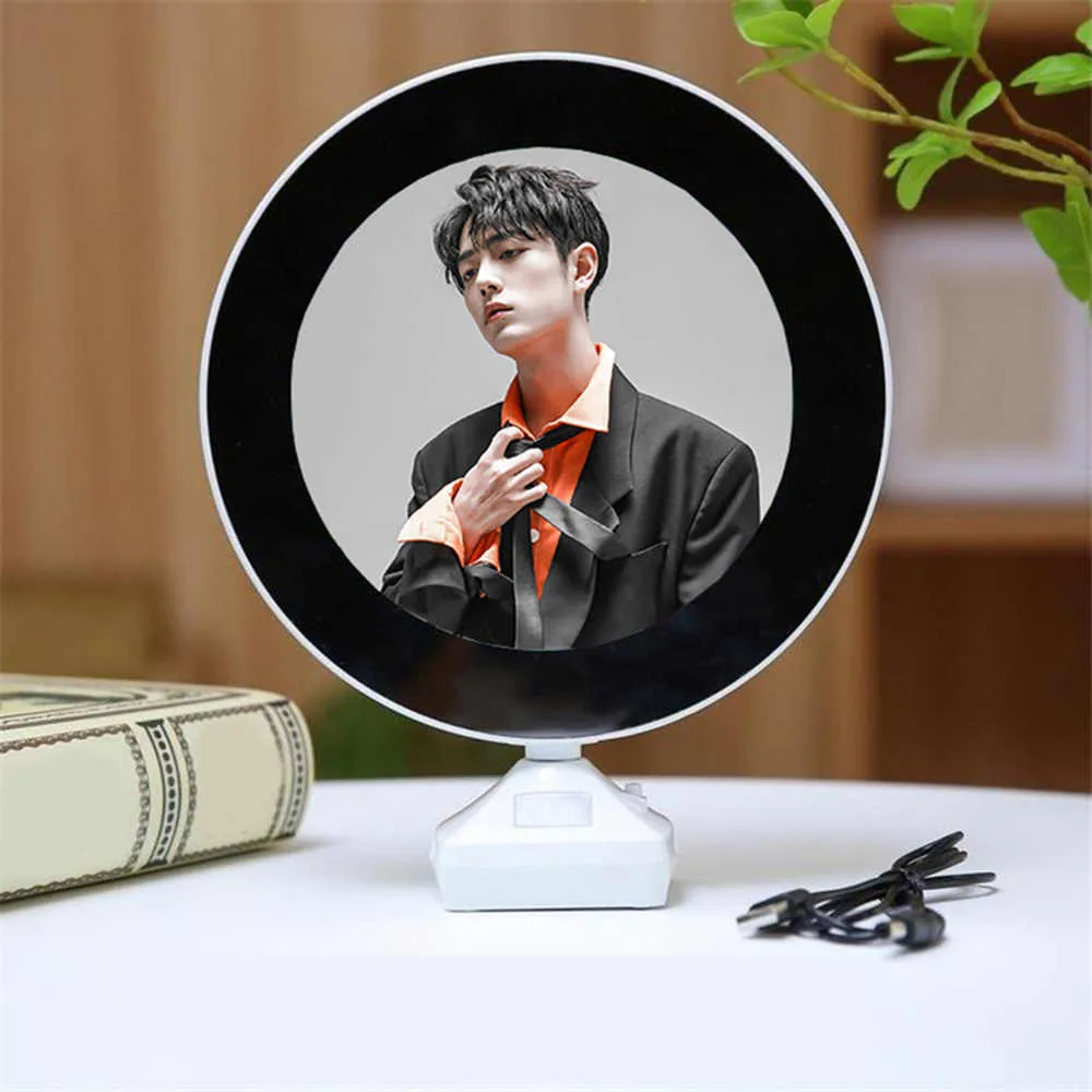 - Designed to function as both a makeup mirror and an LED-lit photo frame.