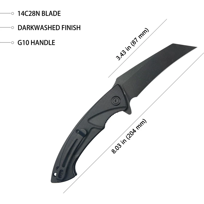 Kubey Anteater Liner Lock Knife Black G-10 (3.5″ Black SW D2)