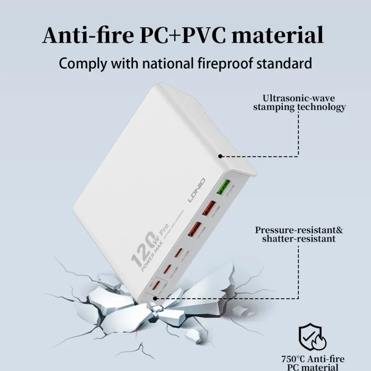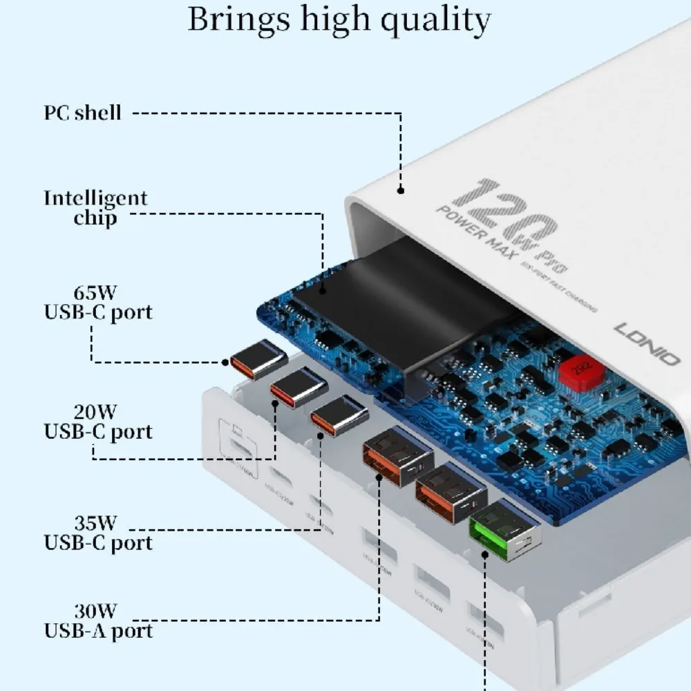 Buy LDNIO 120W Multi-ports Desktop Charging Station Q605 available at ShoppersStop.pk High charging power 120W high tech, faster, smaller. 6 USB ports Charge your devices at the same time. Widely applicable Support charging protocol: PD3.0, QC3.0, AFC, FCP, SCP, PPS Multi-protection High grade fire-proof PC material, 9 multi-protection, safe to use. Buy LDNIO 120W Multi-ports Desktop Charging Station Q605 available at ShoppersStop.pk High charging power 120W high tech, faster, smaller. 6 USB ports Charge your devices at the same time. Widely applicable Support charging protocol: PD3.0, QC3.0, AFC, FCP, SCP, PPS Multi-protection High grade fire-proof PC material, 9 multi-protection, safe to use. High charging power 120W high tech, faster, smaller. High charging power 120W high tech, faster, smaller. High charging power 120W high tech, faster, smaller. 6 USB ports Charge your devices at the same time. 6 USB ports Charge your devices at the same time. 6 USB ports Charge your devices at the same time. Widely applicable Support charging protocol: PD3.0, QC3.0, AFC, FCP, SCP, PPS Widely applicable Support charging protocol: PD3.0, QC3.0, AFC, FCP, SCP, PPS Widely applicable Support charging protocol: PD3.0, QC3.0, AFC, FCP, SCP, PPS Multi-protection High grade fire-proof PC material, 9 multi-protection, safe to use. Multi-protection High grade fire-proof PC material, 9 multi-protection, safe to use. Multi-protection High grade fire-proof PC material, 9 multi-protection, safe to use.