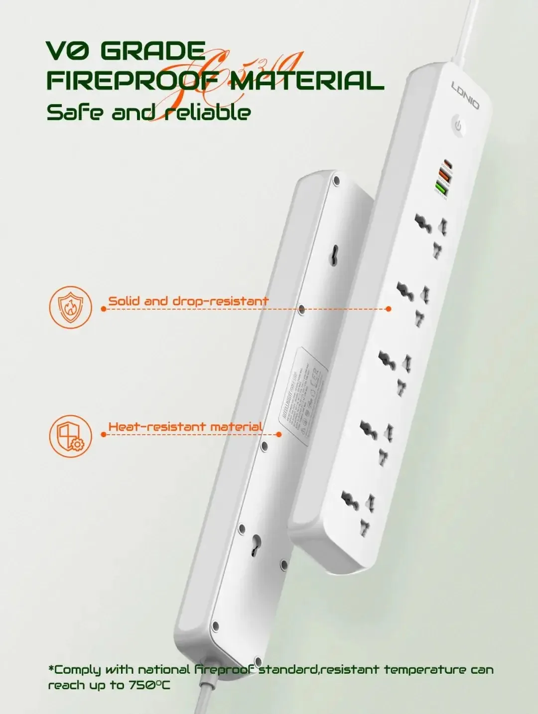 The LDNIO Defender Series Power Extension is not just another power extension; it is a smart solution designed for the technologically advanced households of today. This definitive power accessory brings convenience, safety, and smart charging solutions in one compact form. The intelligent mechanisms of smart identification for optimal charging and a master switch for energy saving puts it a notch above standard extensions in the market. This, coupled with its unparalleled safety design, makes it a must-have accessory for all modern homes.