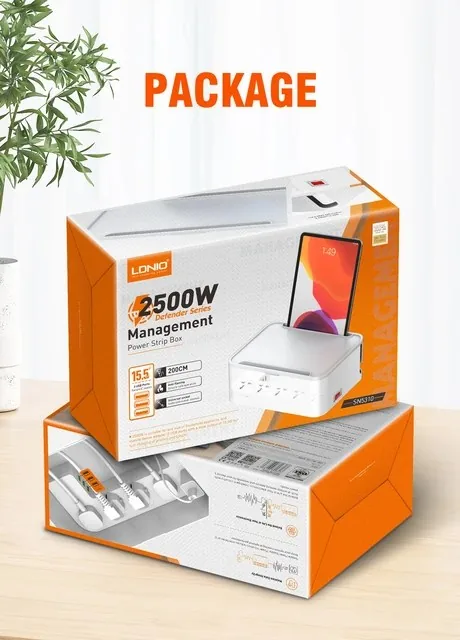 Buy LDNIO SN5310W UK US EU Type Power Strip Surge Protection Power Strip Box 5 port + 3 USB Universal Wireless Charger POWER SOCKET available at ShoppersStop.pk Features: Management box design, with L shape pierce on the side US/UK/EU/Universal outlets for option 1 QC3.0 + 1 PD fast charging port, 1 USB-A charging port Piercing bottom designing make sure heart- dissipation well. Main-control button 200cm power cord Anti-flaming _______________________________________________________________ Buy LDNIO SN5310W UK US EU Type Power Strip Surge Protection Power Strip Box 5 port + 3 USB Universal Wireless Charger POWER SOCKET available at ShoppersStop.pk Features: Features: Management box design, with L shape pierce on the side US/UK/EU/Universal outlets for option 1 QC3.0 + 1 PD fast charging port, 1 USB-A charging port Piercing bottom designing make sure heart- dissipation well. Main-control button 200cm power cord Anti-flaming _______________________________________________________________ Management box design, with L shape pierce on the side US/UK/EU/Universal outlets for option 1 QC3.0 + 1 PD fast charging port, 1 USB-A charging port Piercing bottom designing make sure heart- dissipation well. Main-control button 200cm power cord Anti-flaming Management box design, with L shape pierce on the side US/UK/EU/Universal outlets for option 1 QC3.0 + 1 PD fast charging port, 1 USB-A charging port Piercing bottom designing make sure heart- dissipation well. Main-control button 200cm power cord Anti-flaming _______________________________________________________________