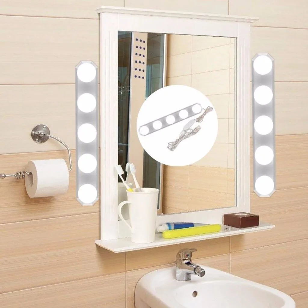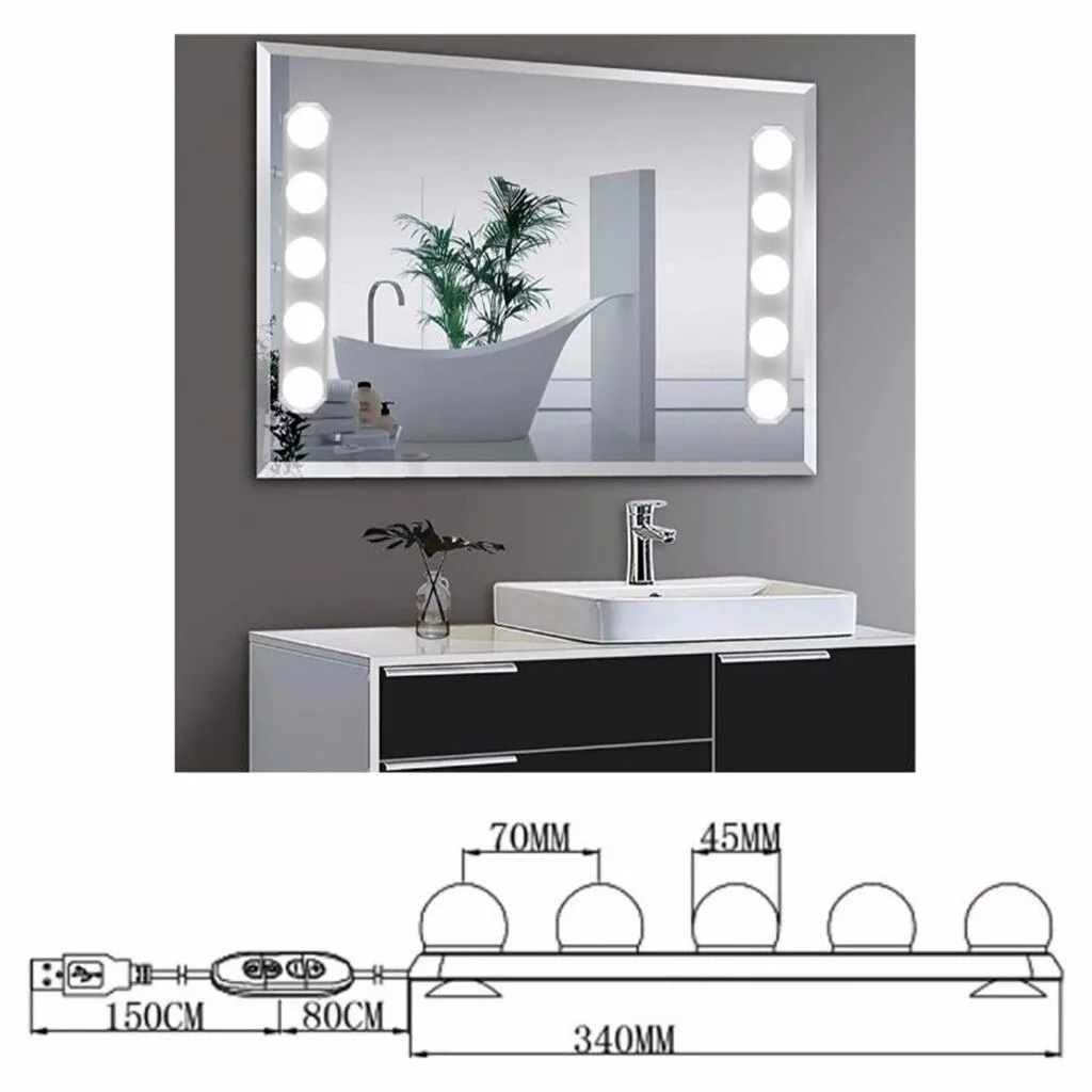 Space the bulbs at approximately 33 cm or as needed for your mirror, route the 1.6 m USB cable to your power source, and use the dimmer to adjust light output. The PVC housings are lightweight—affix securely per the mirror mounting method you choose.