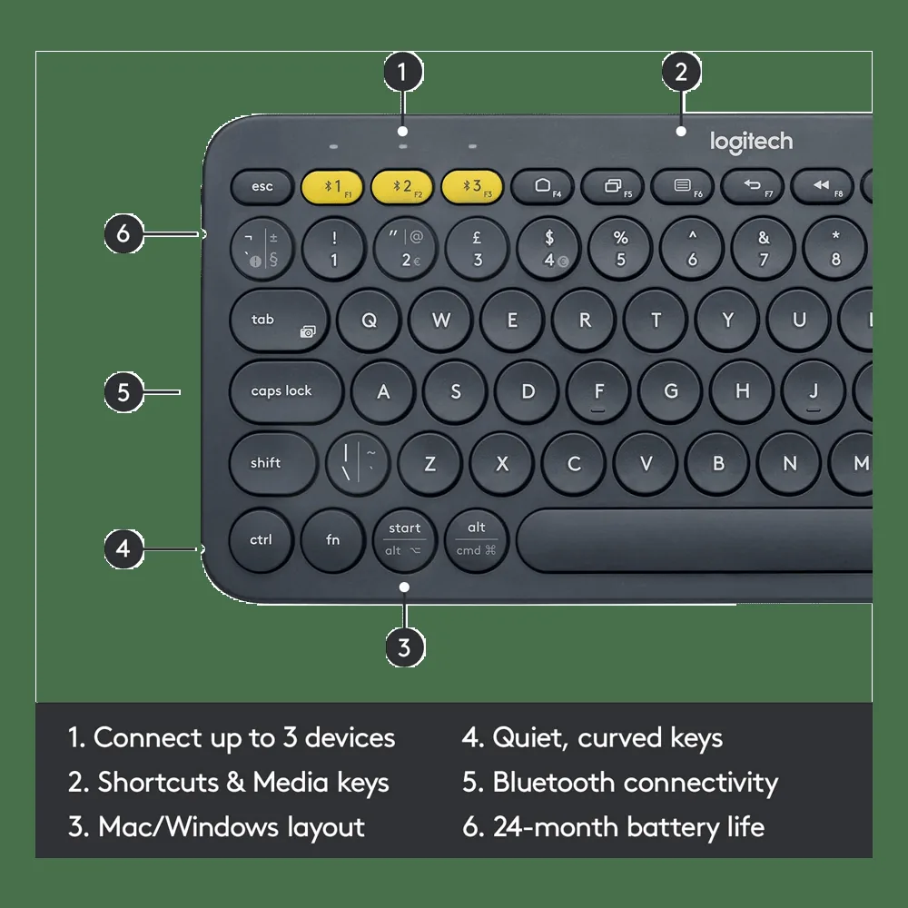 Buy Logitech K380 Multi-Device Bluetooth Keyboard available at ShoppersStop.pk TYPE ON ANYTHING: Enjoy the comfort and convenience of desktop typing on your smartphone, and tablet with this mobile keyboard. K380 Multi-Device is a wireless keyboard that connects to all Bluetooth ® wireless devices that support external keyboards. – Bluetooth wireless – Multi-platform/cross-platform – Windows ® , Mac, Chrome OS ™ , Android ™ , iOS TAKE-TO-TYPE STYLE Take this compact, lightweight, Bluetooth keyboard anywhere in your home. Type wherever you like, on any compatible computer, phone or tablet. EASY-SWITCH Connect up to three devices simultaneously, for example a Windows computer, an iPhone and an Android tablet. Simply touch a button to start typing on a different device. A FAMILIAR LAYOUT K380 Multi-Device recognizes each device and automatically maps keys to give you a familiar layout with your favorite shortcuts. By detecting your specific device—for example, an Apple or Windows computer—this universal keyboard will send the correct key codes. ADDITIONAL FEATURES: 2-YEAR BATTERY LIFE The K380 Multi-Device gets long life out of the two AAA alkaline batteries that come pre-installed. You may even forget the keyboard uses batteries. Keyboard battery life is calculated based on an estimated two million keystrokes per year in an office environment. User experience may vary. Buy Logitech K380 Multi-Device Bluetooth Keyboard available at ShoppersStop.pk TYPE ON ANYTHING: Enjoy the comfort and convenience of desktop typing on your smartphone, and tablet with this mobile keyboard. K380 Multi-Device is a wireless keyboard that connects to all Bluetooth ® wireless devices that support external keyboards. – Bluetooth wireless – Multi-platform/cross-platform – Windows ® , Mac, Chrome OS ™ , Android ™ , iOS TYPE ON ANYTHING: Enjoy the comfort and convenience of desktop typing on your smartphone, and tablet with this mobile keyboard. K380 Multi-Device is a wireless keyboard that connects to all Bluetooth ® wireless devices that support external keyboards. – Bluetooth wireless – Multi-platform/cross-platform – Windows ® , Mac, Chrome OS ™ , Android ™ , iOS TYPE ON ANYTHING: Enjoy the comfort and convenience of desktop typing on your smartphone, and tablet with this mobile keyboard. K380 Multi-Device is a wireless keyboard that connects to all Bluetooth ® wireless devices that support external keyboards. – Bluetooth wireless – Multi-platform/cross-platform – Windows ® , Mac, Chrome OS ™ , Android ™ , iOS TAKE-TO-TYPE STYLE Take this compact, lightweight, Bluetooth keyboard anywhere in your home. Type wherever you like, on any compatible computer, phone or tablet. TAKE-TO-TYPE STYLE Take this compact, lightweight, Bluetooth keyboard anywhere in your home. Type wherever you like, on any compatible computer, phone or tablet. TAKE-TO-TYPE STYLE Take this compact, lightweight, Bluetooth keyboard anywhere in your home. Type wherever you like, on any compatible computer, phone or tablet. EASY-SWITCH Connect up to three devices simultaneously, for example a Windows computer, an iPhone and an Android tablet. Simply touch a button to start typing on a different device. EASY-SWITCH Connect up to three devices simultaneously, for example a Windows computer, an iPhone and an Android tablet. Simply touch a button to start typing on a different device. EASY-SWITCH Connect up to three devices simultaneously, for example a Windows computer, an iPhone and an Android tablet. Simply touch a button to start typing on a different device. A FAMILIAR LAYOUT K380 Multi-Device recognizes each device and automatically maps keys to give you a familiar layout with your favorite shortcuts. By detecting your specific device—for example, an Apple or Windows computer—this universal keyboard will send the correct key codes. A FAMILIAR LAYOUT K380 Multi-Device recognizes each device and automatically maps keys to give you a familiar layout with your favorite shortcuts. By detecting your specific device—for example, an Apple or Windows computer—this universal keyboard will send the correct key codes. A FAMILIAR LAYOUT K380 Multi-Device recognizes each device and automatically maps keys to give you a familiar layout with your favorite shortcuts. By detecting your specific device—for example, an Apple or Windows computer—this universal keyboard will send the correct key codes. ADDITIONAL FEATURES: 2-YEAR BATTERY LIFE The K380 Multi-Device gets long life out of the two AAA alkaline batteries that come pre-installed. You may even forget the keyboard uses batteries. Keyboard battery life is calculated based on an estimated two million keystrokes per year in an office environment. User experience may vary. ADDITIONAL FEATURES: 2-YEAR BATTERY LIFE The K380 Multi-Device gets long life out of the two AAA alkaline batteries that come pre-installed. You may even forget the keyboard uses batteries. Keyboard battery life is calculated based on an estimated two million keystrokes per year in an office environment. User experience may vary. 2-YEAR BATTERY LIFE The K380 Multi-Device gets long life out of the two AAA alkaline batteries that come pre-installed. You may even forget the keyboard uses batteries. Keyboard battery life is calculated based on an estimated two million keystrokes per year in an office environment. User experience may vary. 2-YEAR BATTERY LIFE The K380 Multi-Device gets long life out of the two AAA alkaline batteries that come pre-installed. You may even forget the keyboard uses batteries. Keyboard battery life is calculated based on an estimated two million keystrokes per year in an office environment. User experience may vary. 2-YEAR BATTERY LIFE The K380 Multi-Device gets long life out of the two AAA alkaline batteries that come pre-installed. You may even forget the keyboard uses batteries. Keyboard battery life is calculated based on an estimated two million keystroke