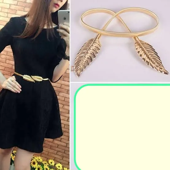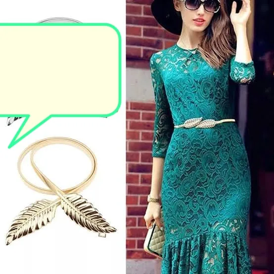 This luxury style leaf‑shape belt combines a decorative metal leaf motif with elastic stretch construction to provide an adjustable, form‑defining waist accessory. Offered in gold and silver tones, the belt is designed to sit high on the waist and works with dresses, skirts and high‑waisted outfits for weddings, formal events and everyday styling.