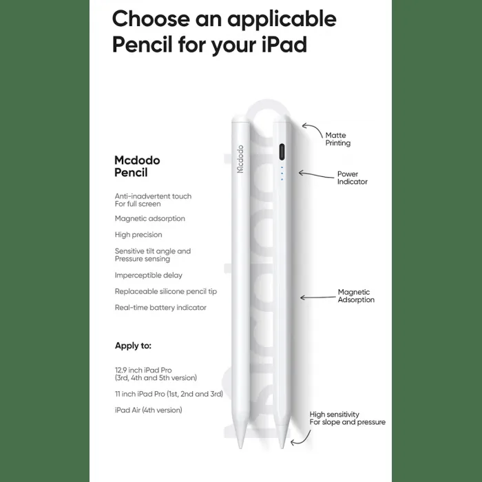 Buy Mcdodo MDD Sketch Series Active Capacitive Stylus Pen PN-8922 available at ShoppersStop.pk Magnetic Adsorption Palm Rejection Design Tilt Angle Real-Time Battery Indicator Apply to iPad Pro 11″/12″, iPad Air 4th Colour: White _______________________________________________________________________________________ Buy Mcdodo MDD Sketch Series Active Capacitive Stylus Pen PN-8922 available at ShoppersStop.pk Magnetic Adsorption Palm Rejection Design Tilt Angle Real-Time Battery Indicator Apply to iPad Pro 11″/12″, iPad Air 4th Colour: White Magnetic Adsorption Palm Rejection Design Tilt Angle Real-Time Battery Indicator Apply to iPad Pro 11″/12″, iPad Air 4th Colour: White _______________________________________________________________________________________