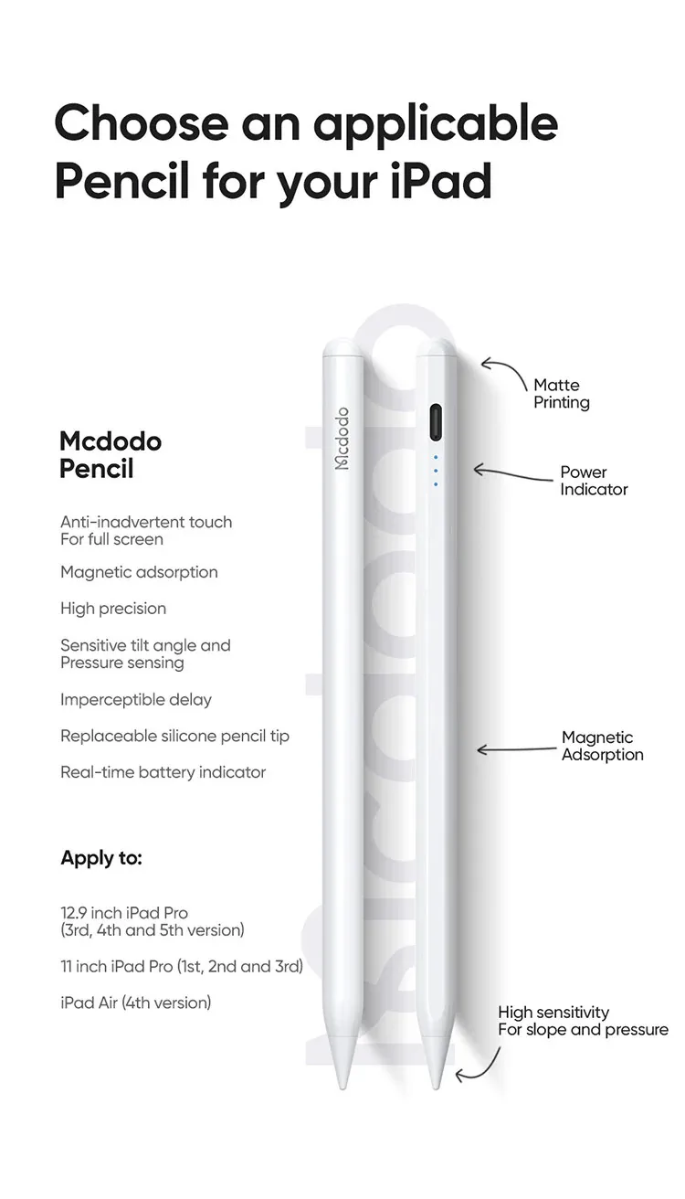 Shop Mcdodo Stylus Pen For Apple iPad PN-8920 to experience unparalleled convenience and top-notch performance. Elevate your everyday life with cutting-edge technology and stylish design!
