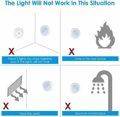 Use this unit anywhere without mains access: inside closets, wardrobes, under cabinets, on stair risers, in garages or storage areas. The magnetic iron and adhesive backing support temporary placement and easy relocation. Ensure the sensing face is unobstructed and batteries are installed with correct polarity. Choose Warm White for a softer ambiance and White for brighter task illumination.