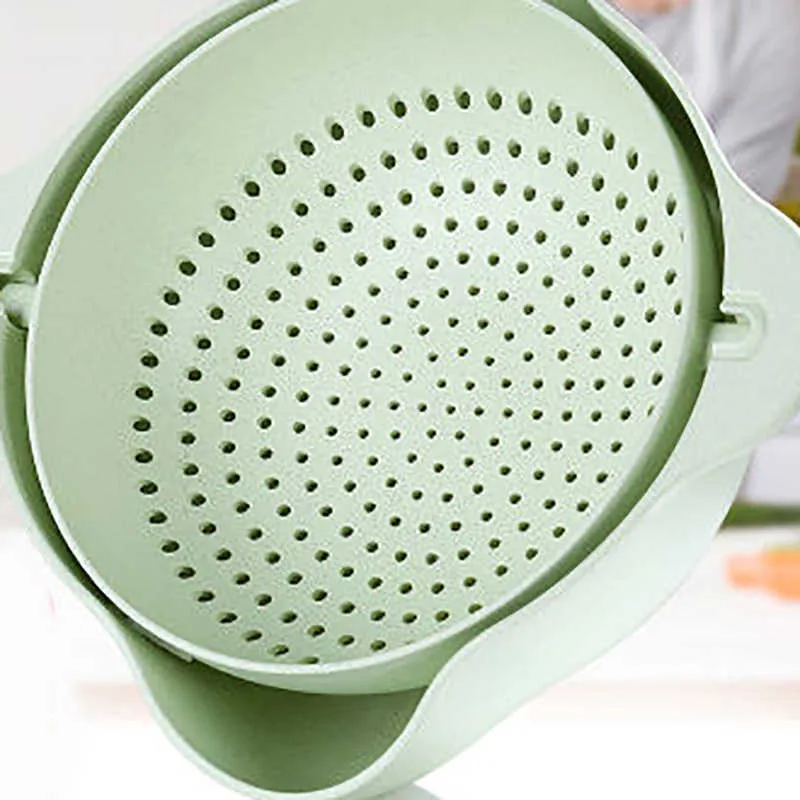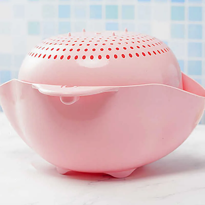 This multifunctional plastic drain basket is designed for rinsing and draining fruits, vegetables and rice.