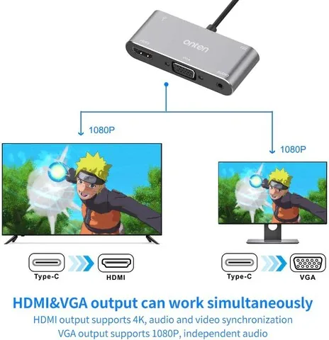 Buy Onten 5-in-1 Type-c to HDMI+VGA+Audio+USB+Type-C Adapter OTN-9573S Onten 9573S 5 in 1 USB Type-C Hub ?is a perfect dock station? featuring multiple ports enhances the life and work easier .