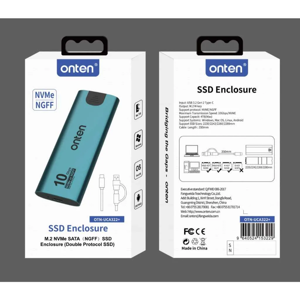 We sale 100% authentic Onten NVME M.2 SSD Hard Drive Enclosure NGFF OTN-UCA322+ by Onten.