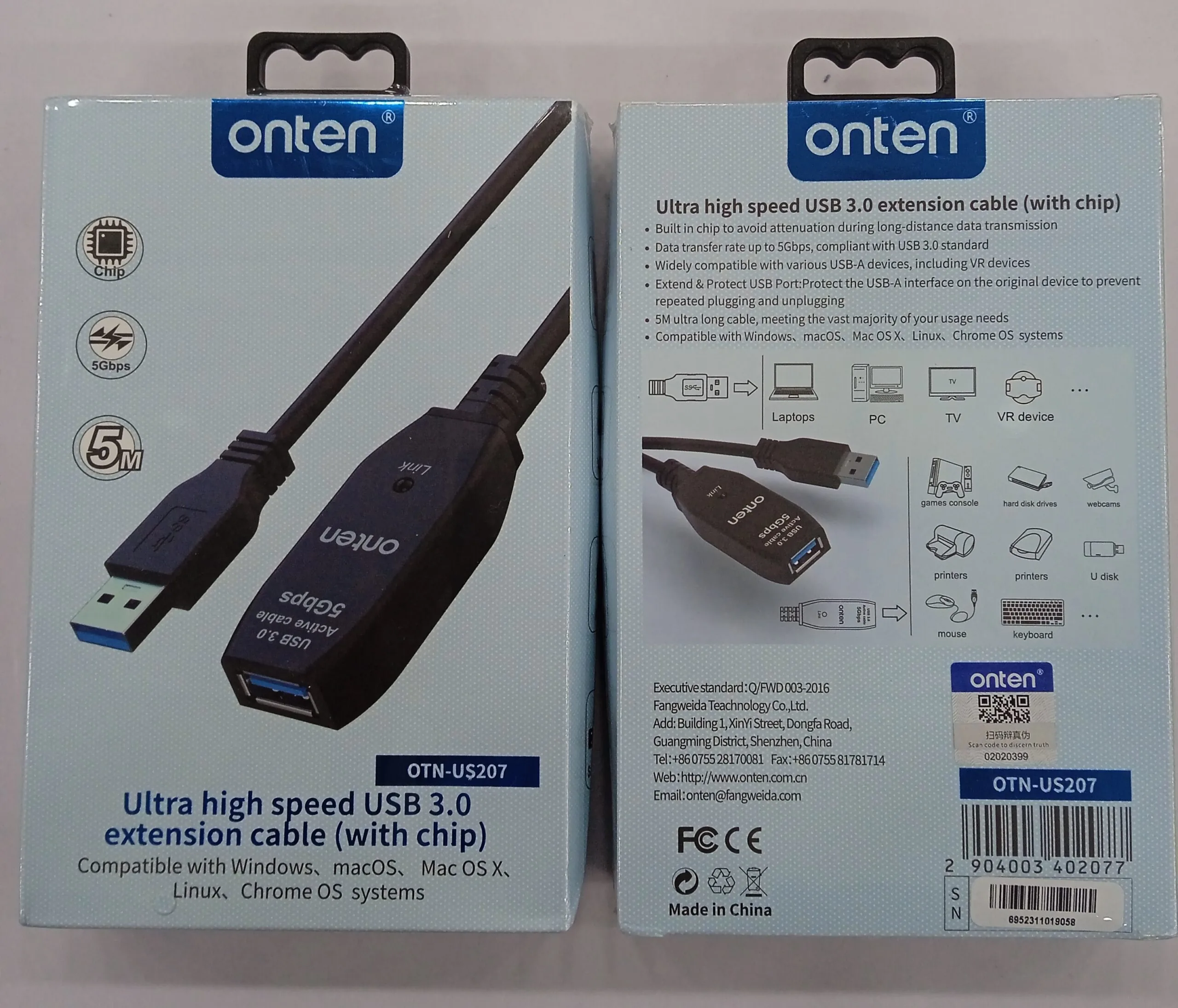 We have 100% brand new Onten Ultra High Speed USB 3.0 Extension Cable with Chip OTN-US207 in our stock. We also make sure you get it in perfect product packaging even.