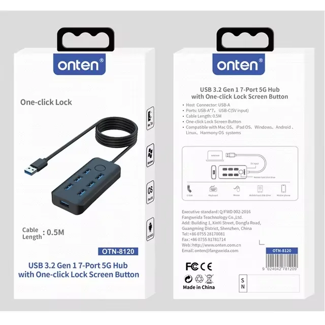 Experience the efficiency, versatility, and speed like never before with our latest addition, the Onten USB 3.2 Gen 1 7-Port 5G Hub OTN-8120.