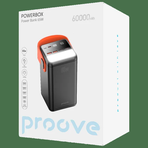 You’ll never have to worry about running out of battery power again with the incredible Proove Powerbox Power Bank 65W 60000mAh.