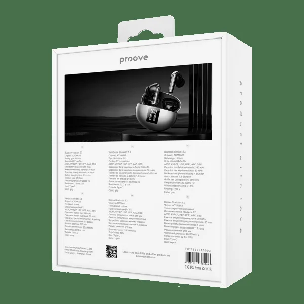 Buy Proove TWS Wireless Airpods Thunder Buds SE with ANC available at ShoppersStop.pk Design: These wireless headphones impress with their stylish and modern design in an attractive silver colour. The compact size of the Ø10 mm drivers ensures not only aesthetic appeal but also comfort, making them ideal for everyday use. Functionality: The headphones are equipped with the latest version of Bluetooth 5.3, which ensures a stable connection and fast data transfer. The battery capacity of the case is 350 mAh, and the earbuds are 30 mAh, providing up to 6 hours of playback time for music or calls. The earbuds are equipped with an LED display that shows the charge of the earbuds inside the case. Protection: The headphones have a durable case that effectively protects them while carrying them. The Type-C fast charging port allows you to charge the headphones in just 1.5 hours. The lithium battery not only ensures durability, but also guarantees safe use, making these headphones a reliable choice for active users. Buy Proove TWS Wireless Airpods Thunder Buds SE with ANC available at ShoppersStop.pk Design: These wireless headphones impress with their stylish and modern design in an attractive silver colour. The compact size of the Ø10 mm drivers ensures not only aesthetic appeal but also comfort, making them ideal for everyday use. Functionality: The headphones are equipped with the latest version of Bluetooth 5.3, which ensures a stable connection and fast data transfer. The battery capacity of the case is 350 mAh, and the earbuds are 30 mAh, providing up to 6 hours of playback time for music or calls. The earbuds are equipped with an LED display that shows the charge of the earbuds inside the case. Protection: The headphones have a durable case that effectively protects them while carrying them. The Type-C fast charging port allows you to charge the headphones in just 1.5 hours. The lithium battery not only ensures durability, but also guarantees safe use, making these headphones a reliable choice for active users.