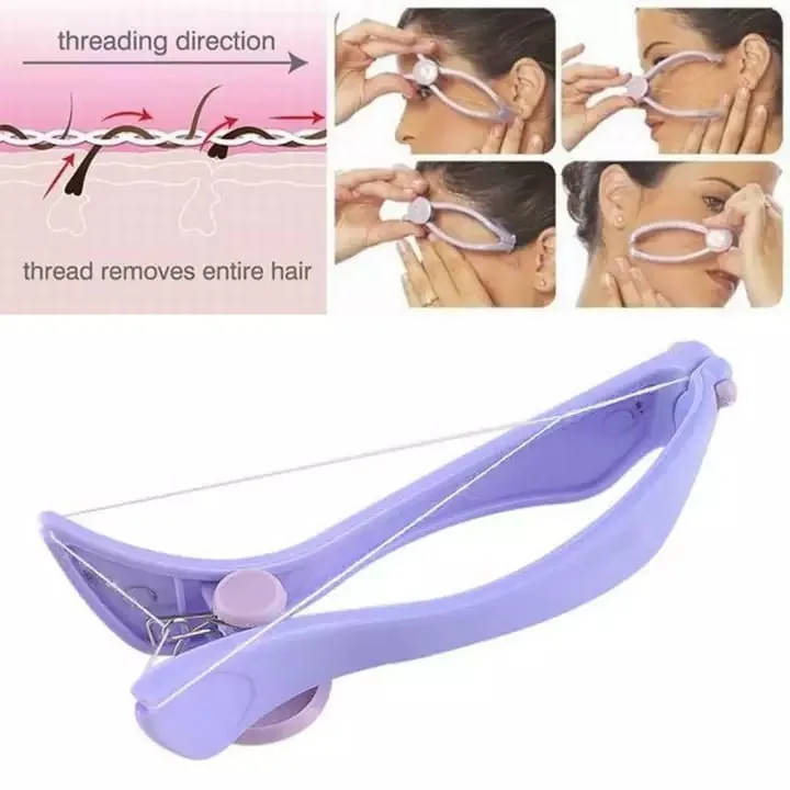 - Manual spring-action hair remover for facial and small-area hair removal (threading-style).