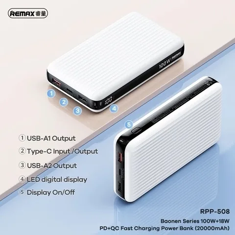 Product Description: REMAX Baonen Series 20000mAh 100W+18W PD+QC Fast Charging Power Bank (RPP-508)