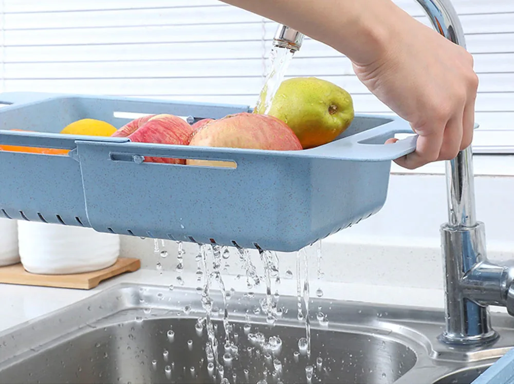 This retractable sink rack is a multi-purpose kitchen organizer designed to help you keep the sink area tidy and create efficient drying/storage space for vegetables, utensils and kitchen accessories.