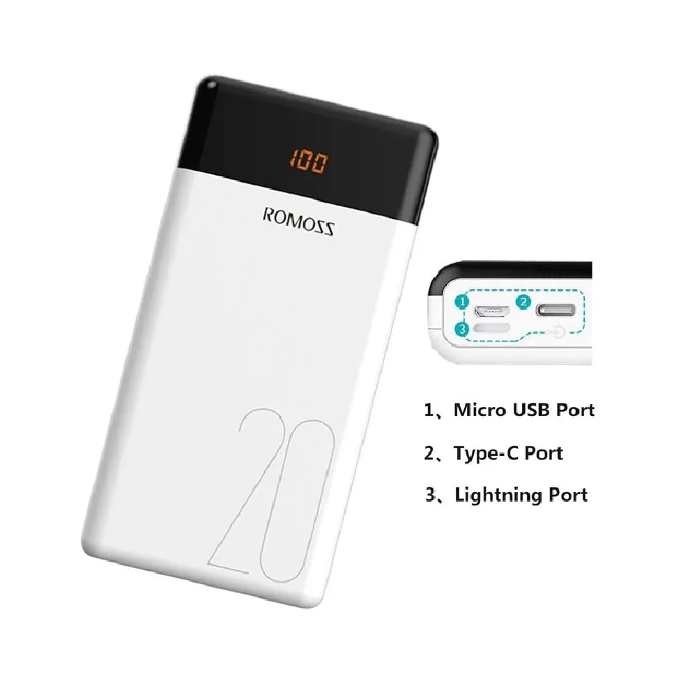 Stay charged and ready for anything with the Romoss LT20 20000mAh power bank, the perfect companion for your smart devices.