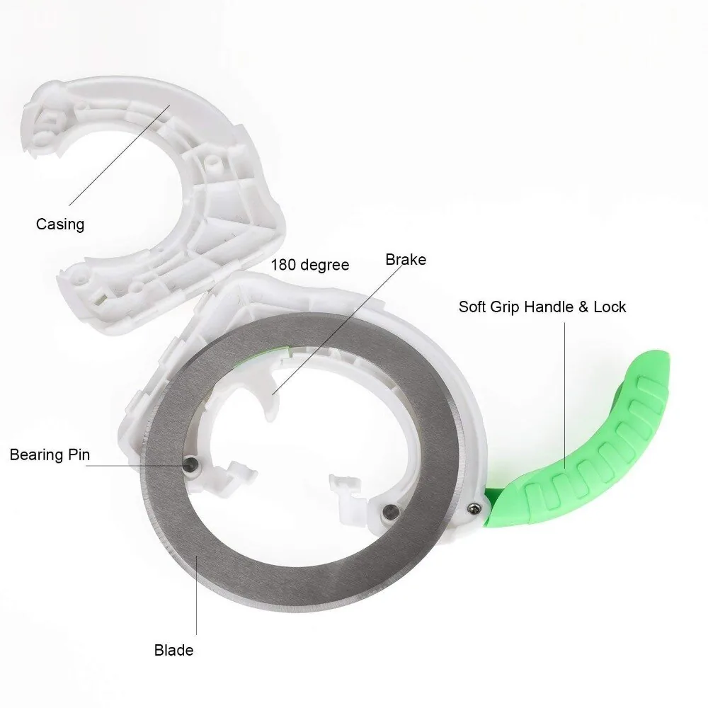 - Ergonomic handle designed for comfortable grip and control during rolling cuts.