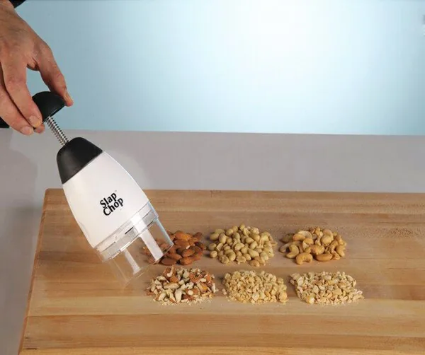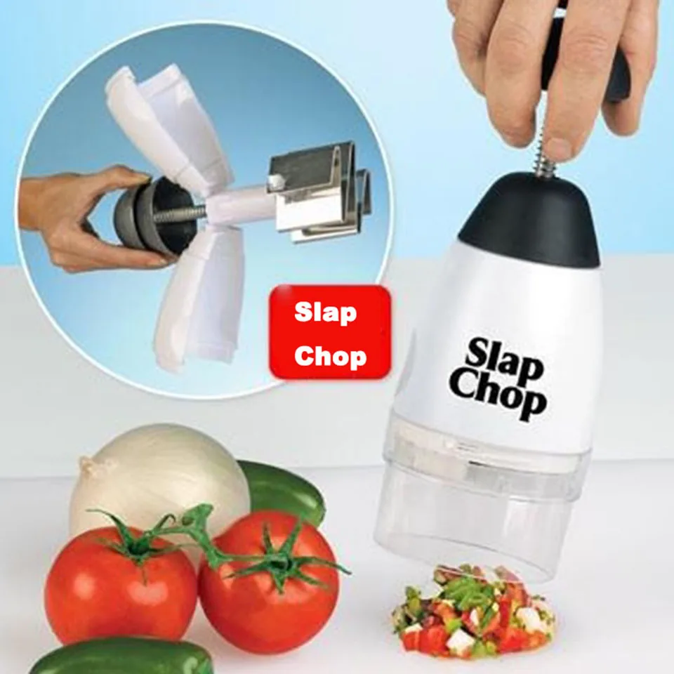 Slap Chop Food Chopper Machine — manual hand-operated food chopper with rotating stainless steel blades