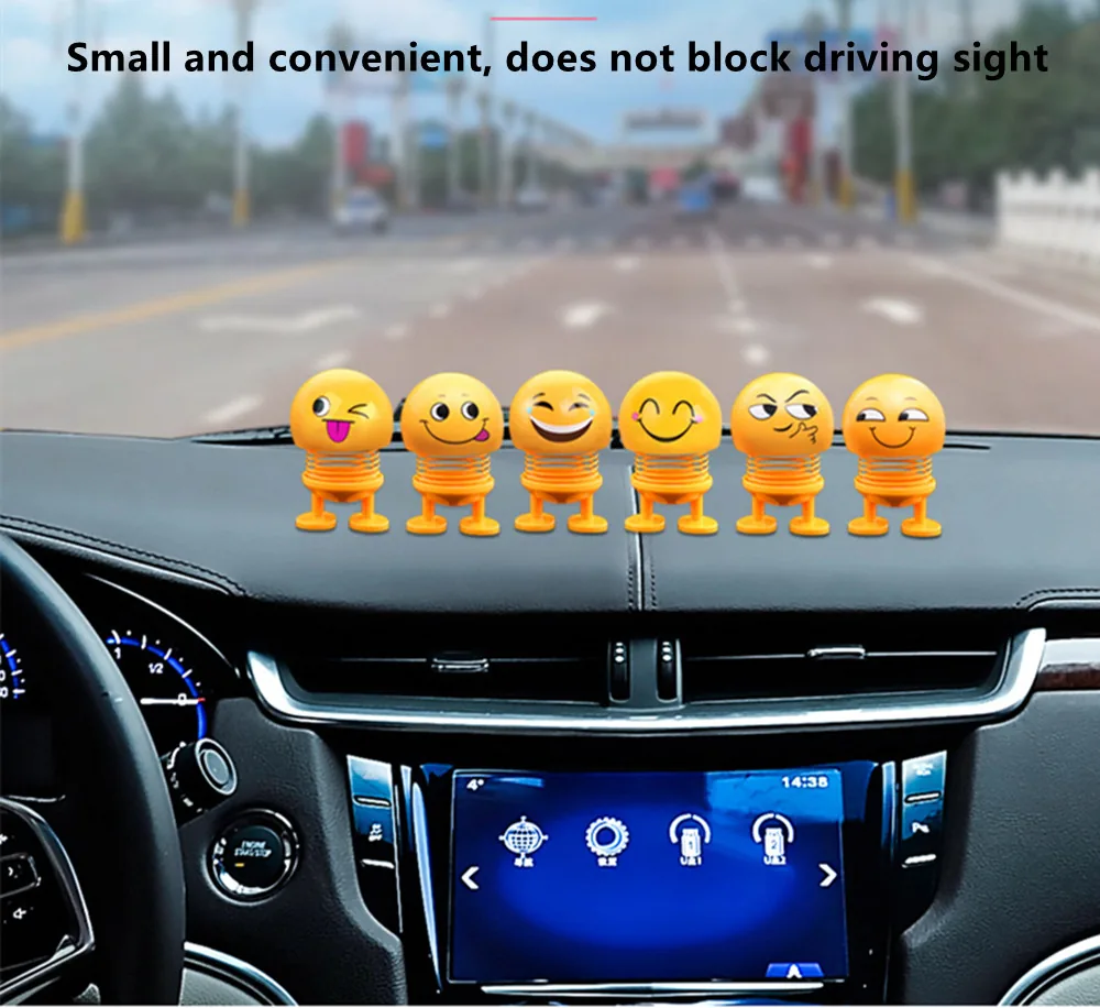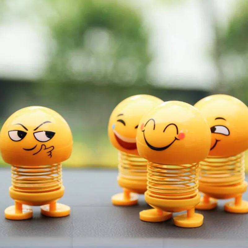 This compact smiling spring doll is a small novelty ornament designed for car dashboards, home desks and office workstations.