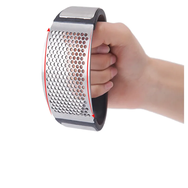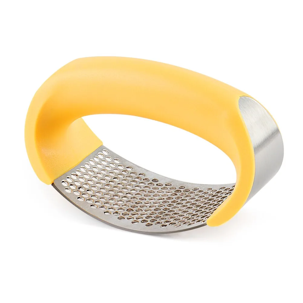 A compact garlic press crafted from food-grade stainless steel paired with a silicone garlic peeler. Compact dimensions and a dense hole pattern deliver finely pressed garlic for everyday cooking.