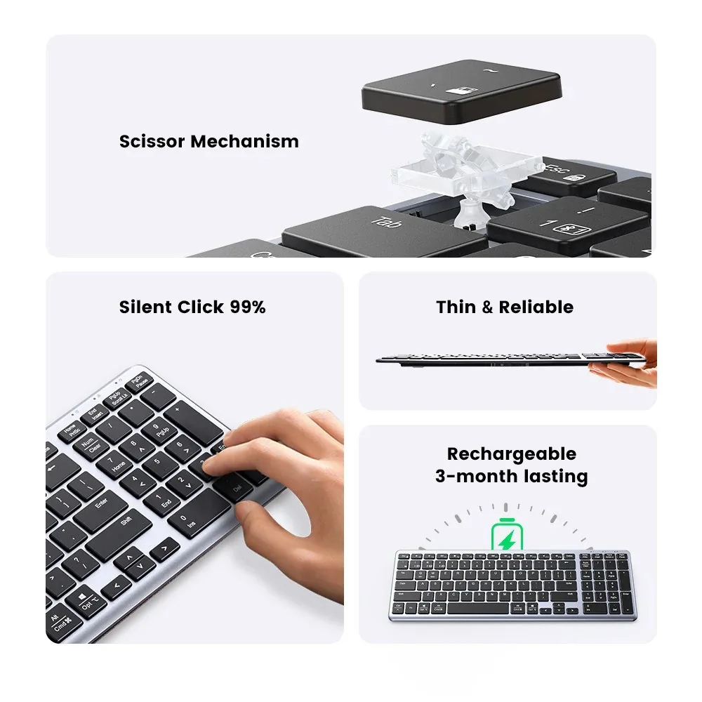 - Universal Compatibility: The Ugreen Ultra Slim Wireless Keyboard is compatible with a wide range of devices, including computers, laptops, and tablets, across various platforms like Windows, Mac, iOS, and Android.