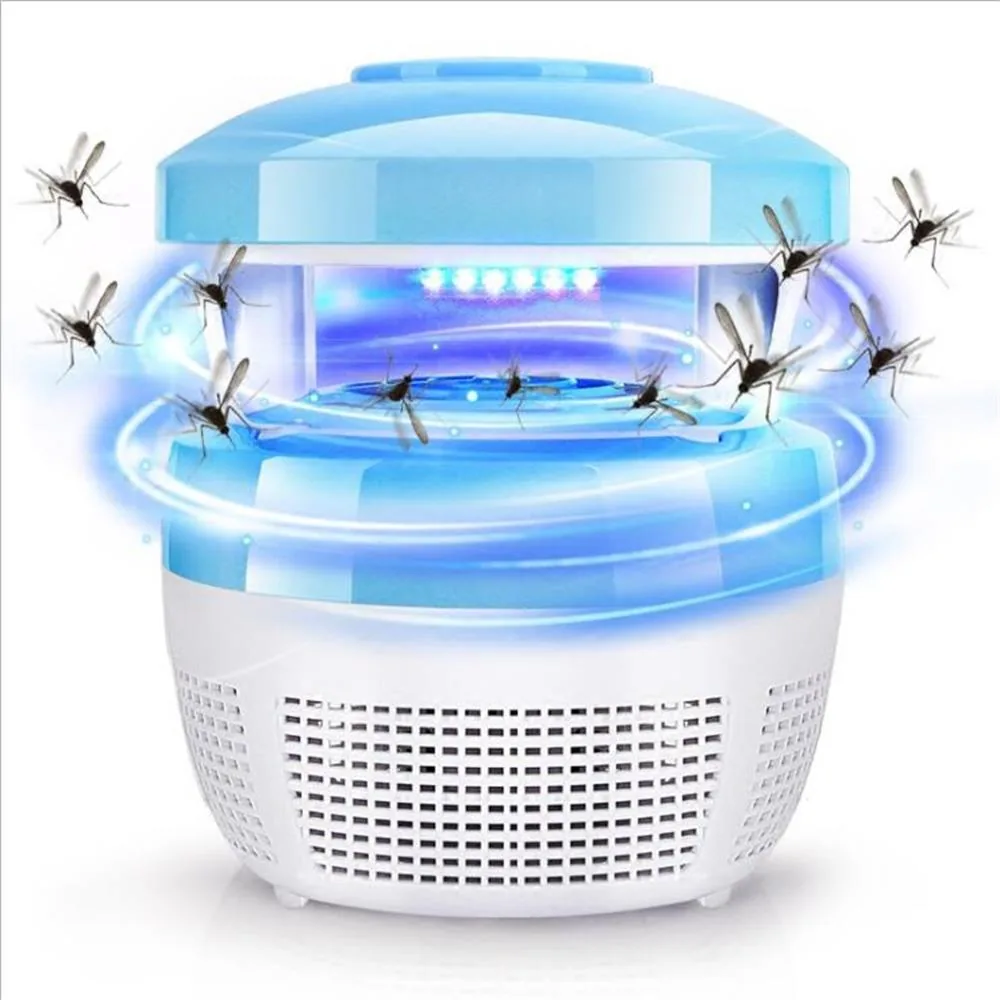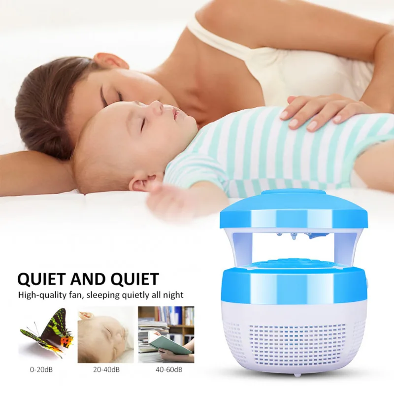 This USB-powered electric mosquito killer lamp combines LED attraction with an electric shock grid and photocatalyst technology to reduce flying insects within medium to large rooms.