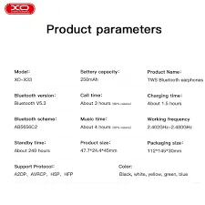 - Superior Audio Quality: The XO TWS Wireless Earphones X33 deliver impeccable sound quality with high-definition audio, low latency, and noise isolation.