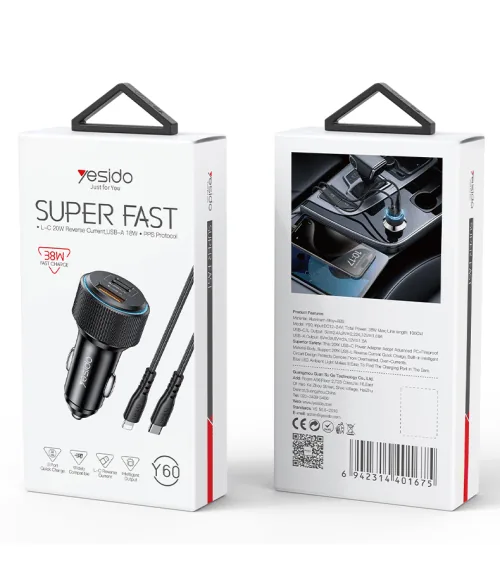 We have 100% brand new YESIDO 2C+U 38W WITH iP CABLE FAST CAR CHARGER Y60 in our stock. We also make sure you get it in perfect product packaging even.