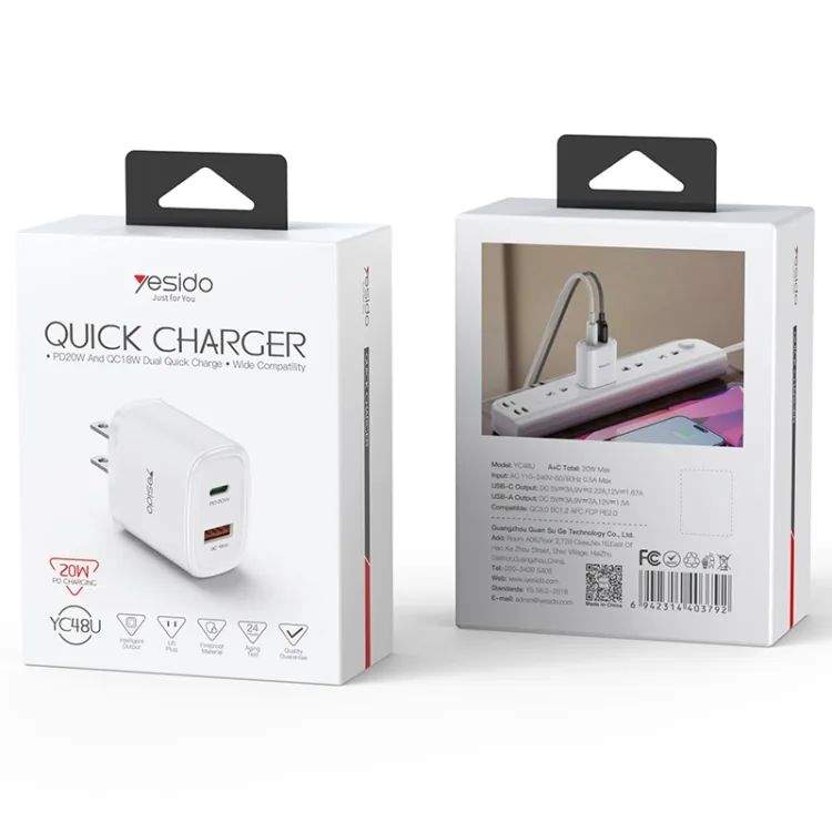 We sale 100% authentic YESIDO U+C 20W Fast Charger YC48U by Yesido.